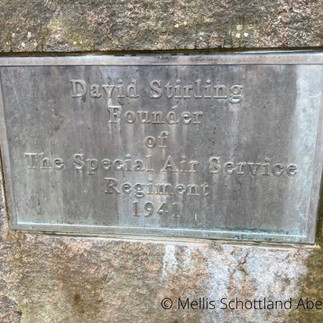 Colonel Sir David Stirling, OBE, DSO, lebte vom 15. November 1915 bis zum 4. November 1990. Er war ein schottischer Landbesitzer, ein begeisterter Bergsteiger, Offizier im Zweiten Weltkrieg und Gründer des Special Air Service. Archibald David Stirling wurde im Familienanwesen Keir House drei Meilen südöstlich von Doune geboren. Das Anwesen liegt jetzt unmittelbar westlich des nördlichen Endes der Autobahn M9. Sein Vater war Brigadegeneral Archibald Stirling von Keir und seine Mutter war Margaret Fraser, die wiederum eine Tochter von Lord Lovat war. Stirling wurde am Ampleforth College in Yorkshire und am Trinity College in Cambridge ausgebildet.